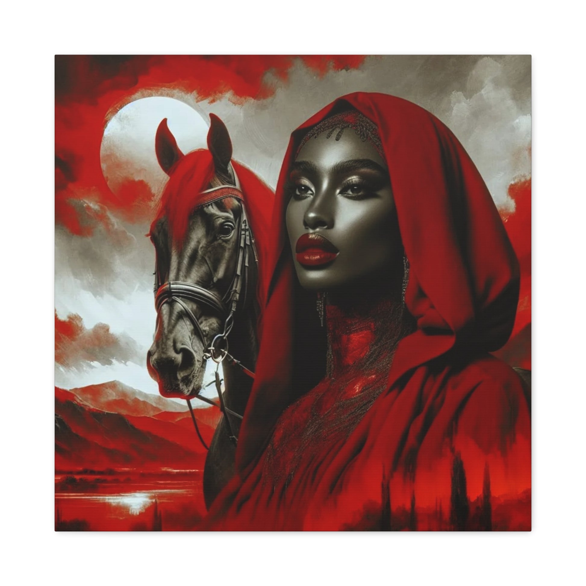 Beautiful Black Woman and her Horse Canvas Art