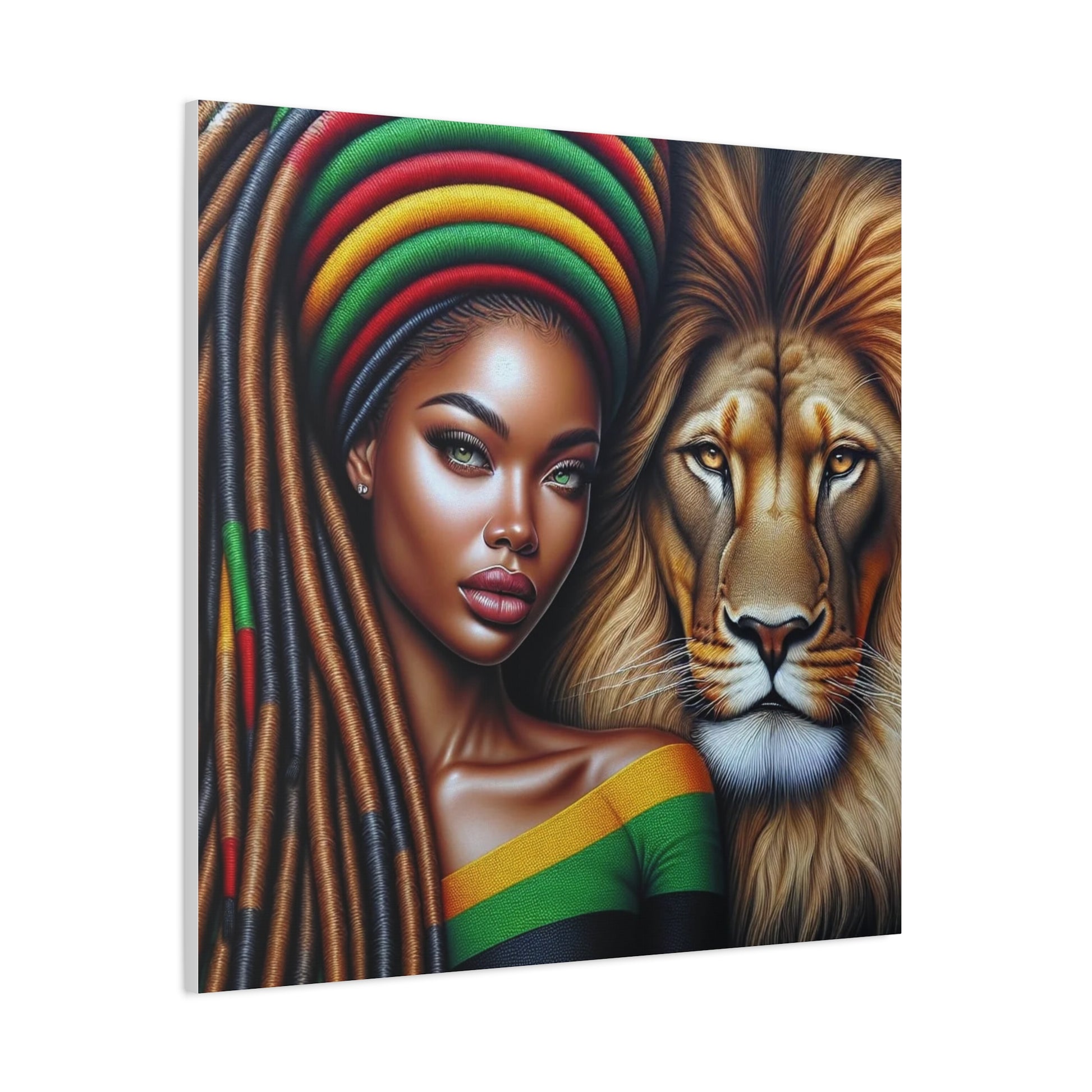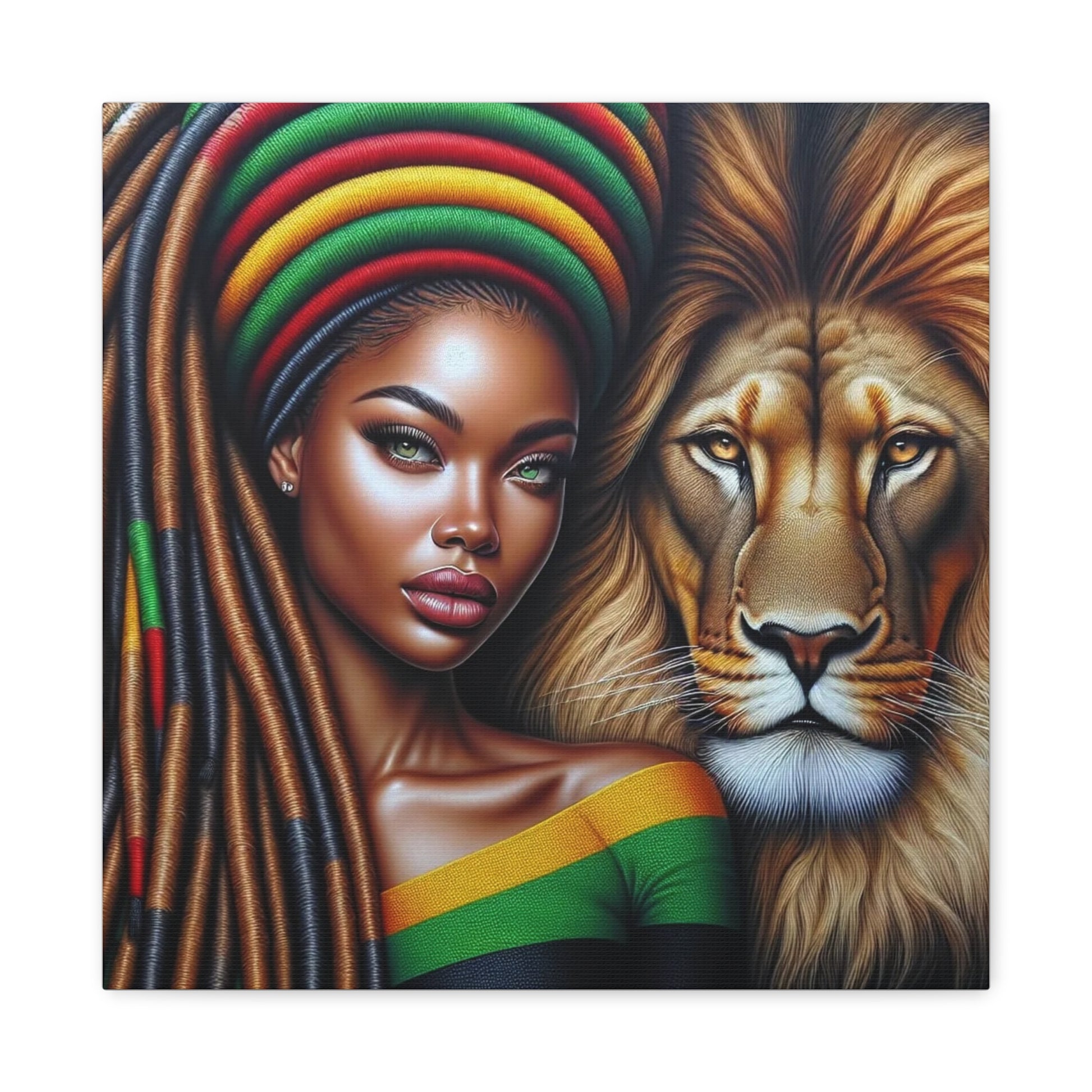 Beautiful Black Woman and Her Lion Canvas Art