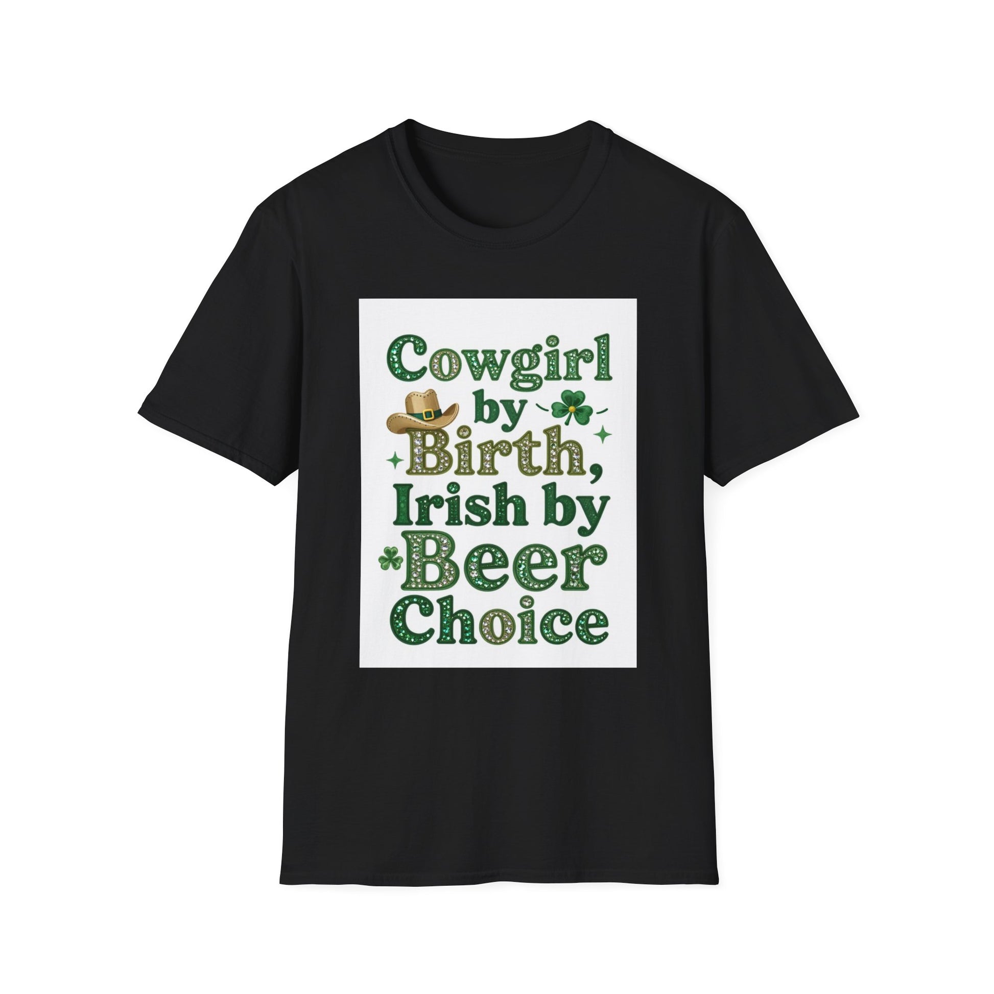 Cowgirl By Birth Irish By Beer Choice.. Saint Patty's Day Funny T-Shirt — St. Patrick's Day Humor Tee