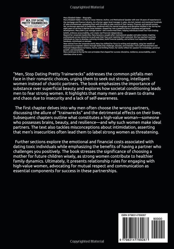 "Men, Stop Dating Pretty Trainwrecks" addresses the common pitfalls men face in their romantic choices, urging them to seek out strong, intelligent women instead of chaotic partners. The book emphasizes the importance of substance over superficial beauty and explores how societal conditioning leads men to fear strong women. It highlights that many men are drawn to drama and chaos due to insecurity and a lack of self-awareness.