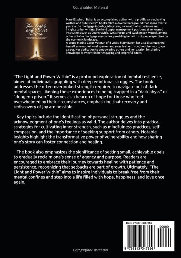 "The Light and Power Within" is a profound exploration of mental resilience, aimed at individuals grappling with deep emotional struggles. The book addresses the often-overlooked strength required to navigate out of dark mental spaces, likening these experiences to being trapped in a "dark abyss" or "dungeon prison." It serves as a beacon of hope for those who feel overwhelmed by their circumstances, emphasizing that recovery and rediscovery of joy are possible.